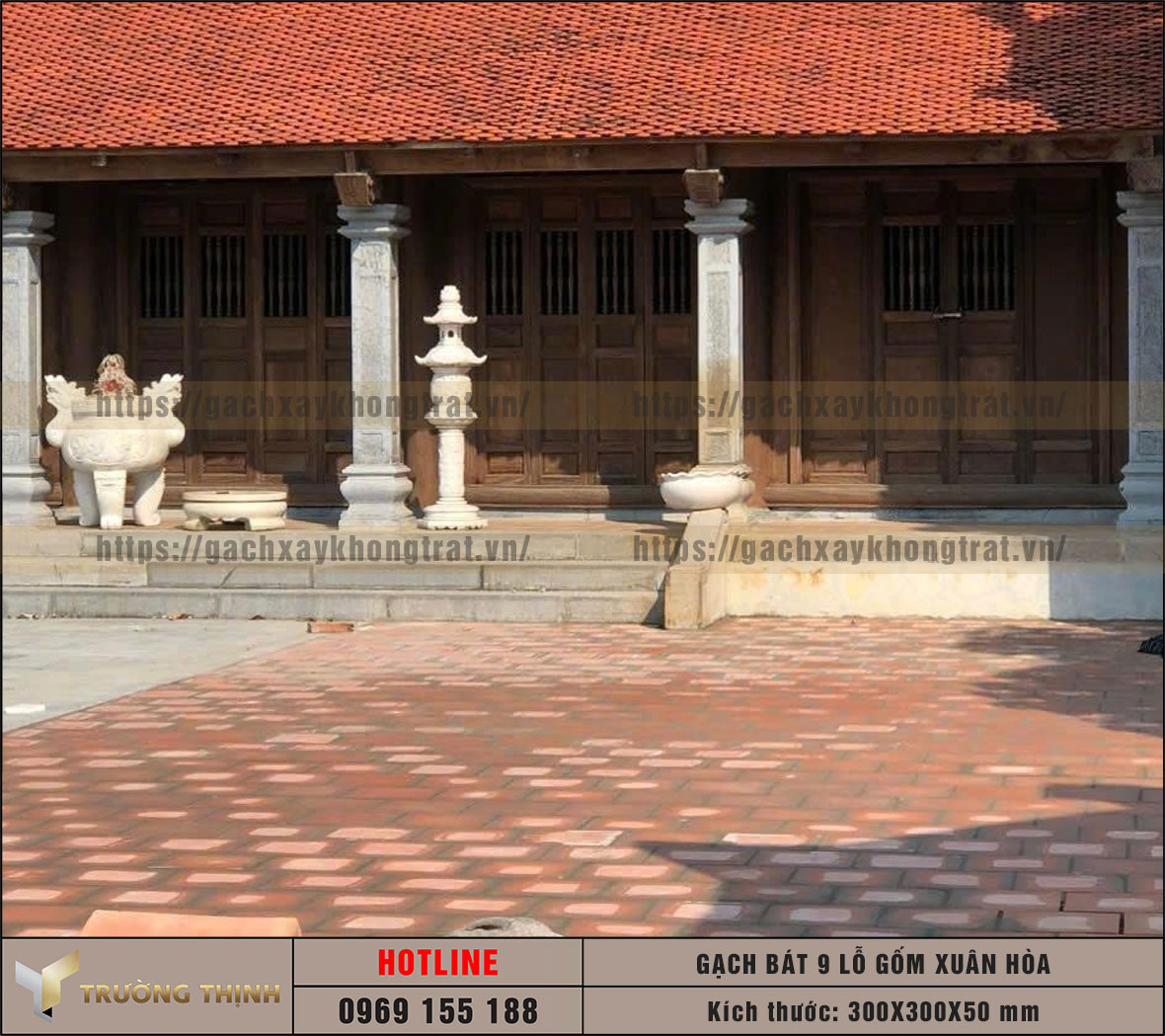 Trong xu hướng kiến trúc hiện đại pha lẫn nét truyền thống, việc lựa chọn vật liệu lát sân vườn, lối đi hay các công trình tâm linh đòi hỏi sự tỉ mỉ về cả thẩm mỹ lẫn chất lượng. Một trong những sản phẩm đang được các kiến trúc sư và chủ đầu tư săn đón nhiều nhất hiện nay chính là Gạch bát 9 lỗ 300x300x50 Gốm Xuân Hòa.